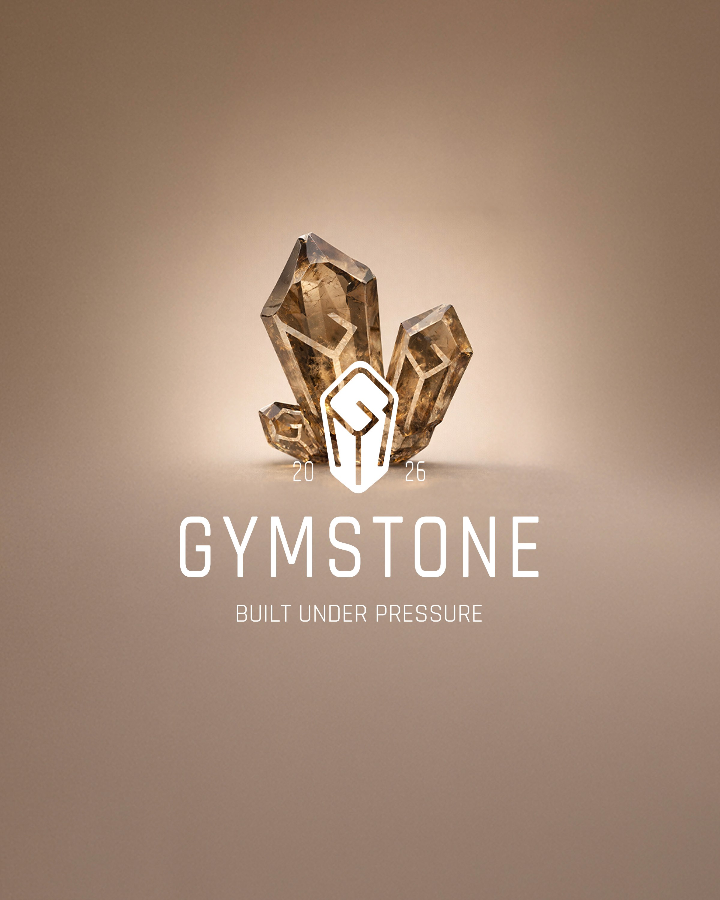 De vorm van het beeldmerk is een kristalpunt - een verwijzing naar druk, kracht en groei onder spanning. In deze geometrische vorm is subtiel het woord GYM geïntegreerd, waarbij de letterlijnen samenkomen in één solide, minimalistisch icoon.